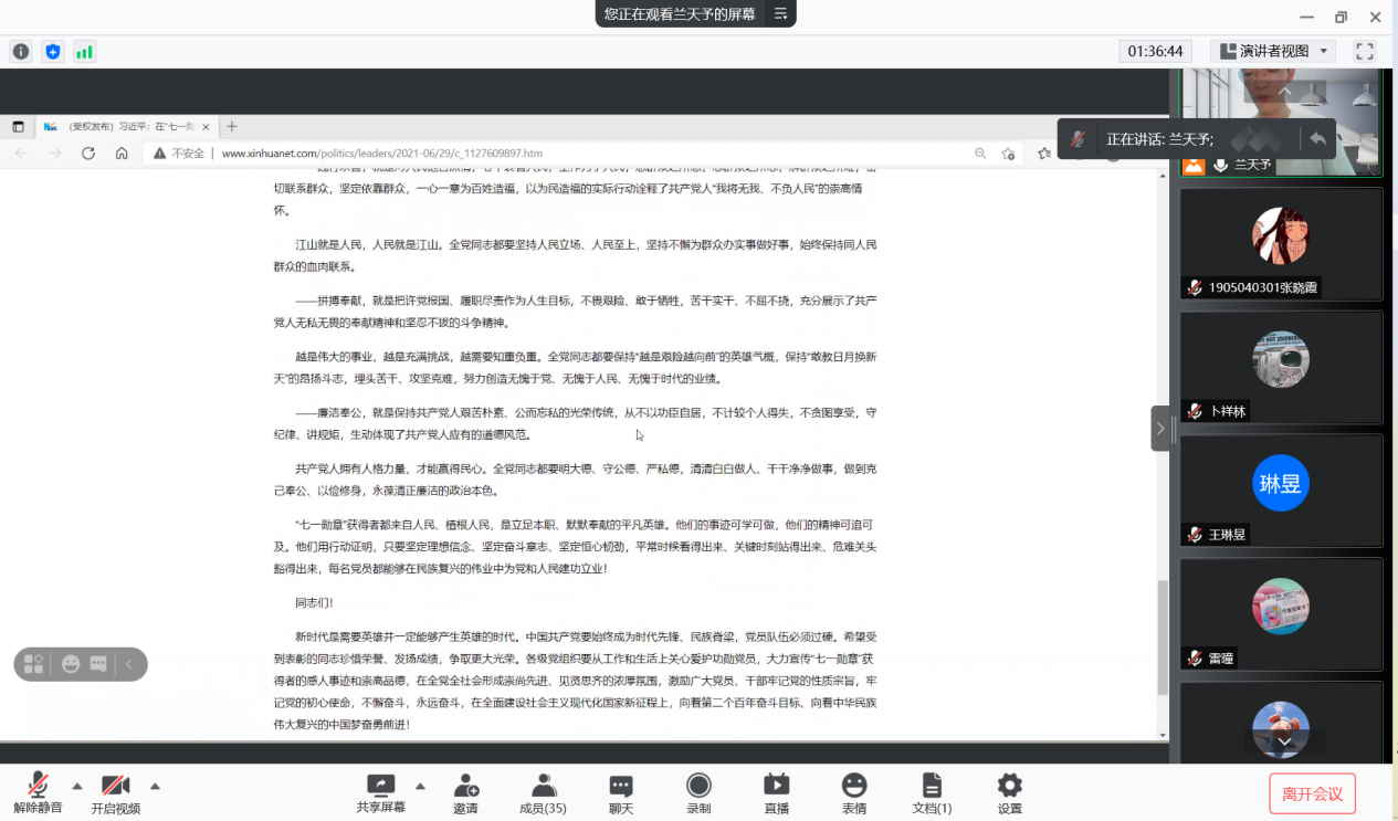 2021年7月7日,为引导广大学生党员加强党性修养,坚定理想信念,树牢宗旨意识,进一步坚定为共产主义事业奋斗终身的信心和决心,我支部开展线上党员理论学习,学习主要分为以下两部分:
