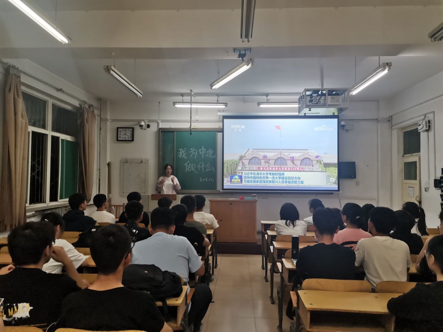 接着,大家就“我为中北做什么”这个问题进行了讨论,同学们也就此问题积极发表了自己的看法。吴洋博同学认为我们应该向清华大学学习,重视提升学生的身体素质。同时也希望同学们有主人翁意识,在学校发展的进程中做出贡献。李升宇同学认为,我们应努力学习科学文化知识,不断培养自己科学求是的实践精神,团结协作的社会觉悟,以及敢上必胜的斗争信念,在知行合一中主动担当作为。